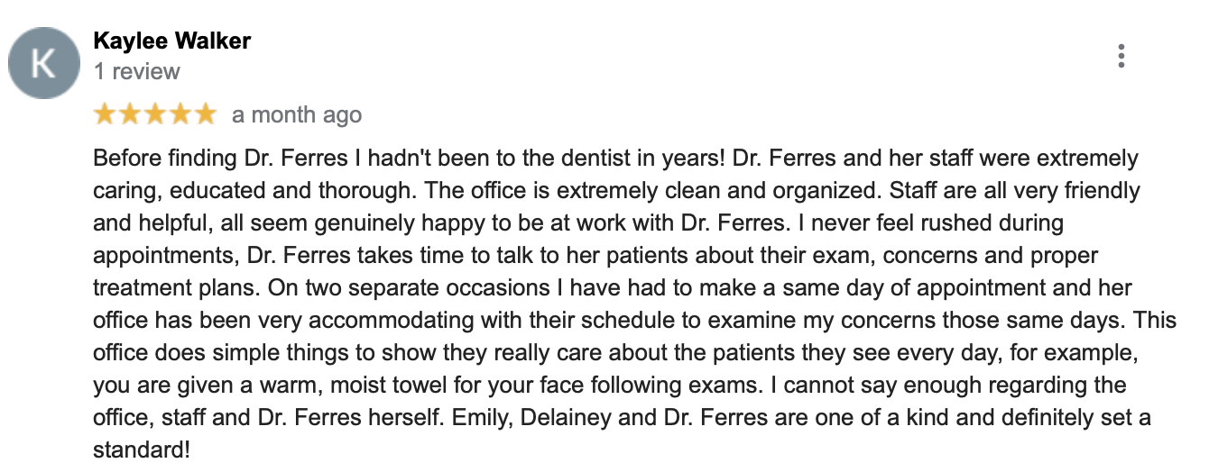 We will always help you figure out how to fit the care that you need into your life, in a way that's comfortable for you. At Dr. Ferres' Office, we never want money to come between you and the care that you need!